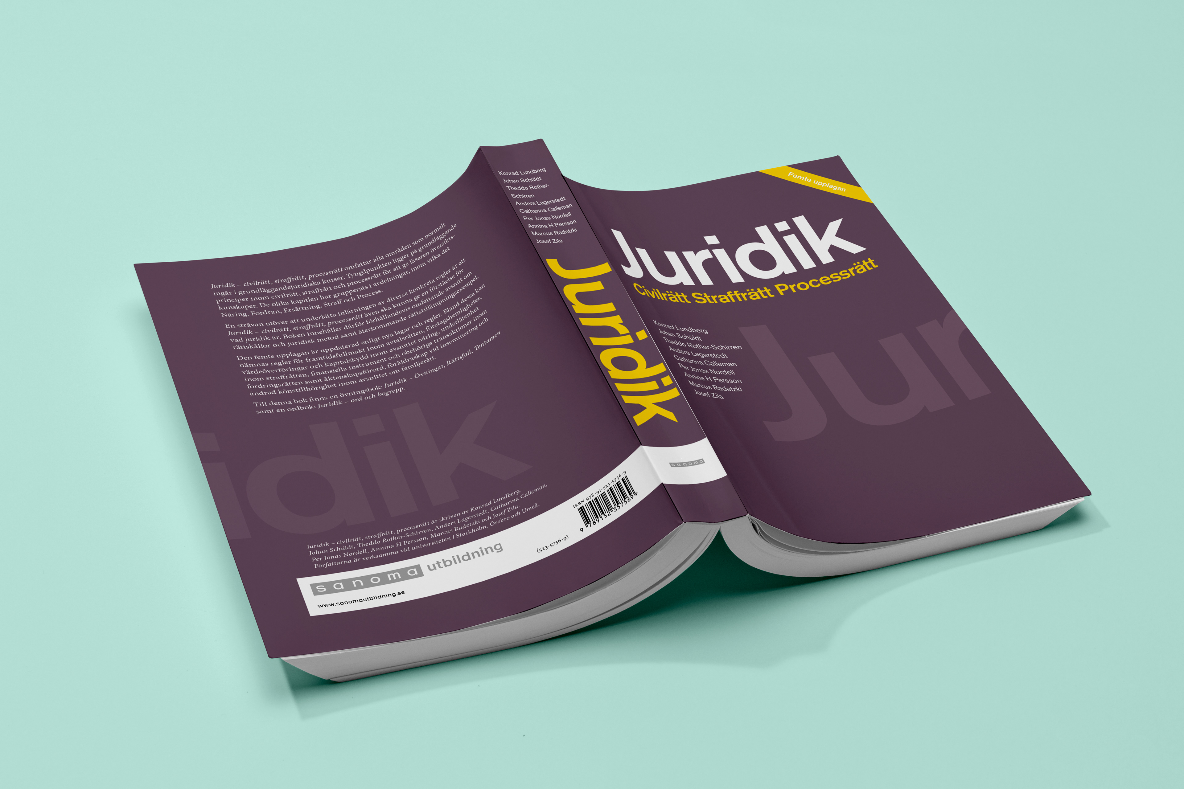 Med start 2011 har jag formgivit boken Juridik – civilrätt, straffrätt, processrätt. Boken är en översiktsbok och används på många grundutbildningar i juridik. Genom åren har det kommit att bli hela fem utgåvor och flera nytryck.